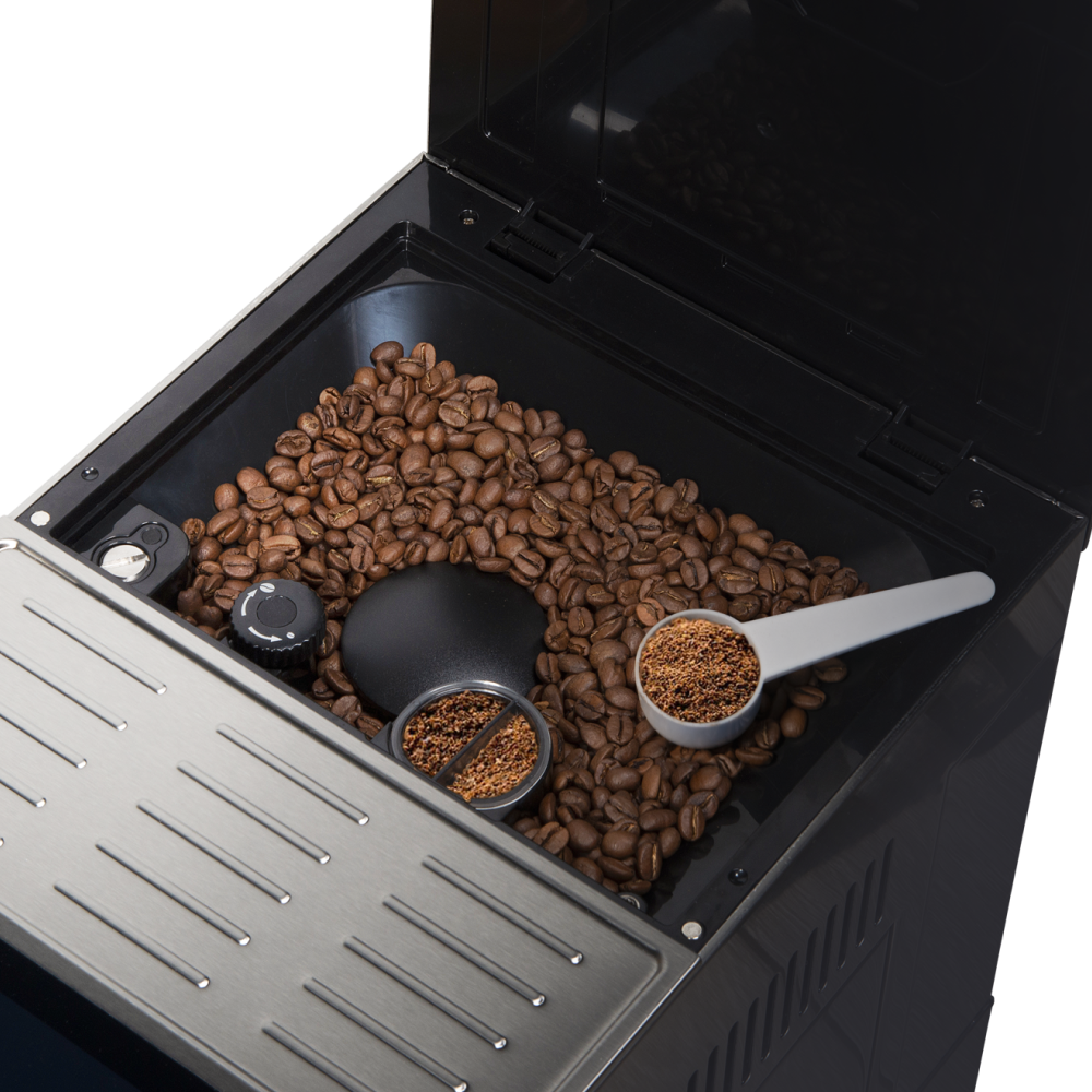 Выбирайте программу приготовления кофе по вкусу: капучино, эспрессо, американо, латте — смотрите иконки. Засыпайте зерна — агрегат наделен функциями кофемолки с разным диапазоном помола, или засыпайте ложкой с мерными обозначениями уже молотый кофе. Отдельно предусмотрена возможность подогрева молока или воды для заваривания чайных листьев, трав.