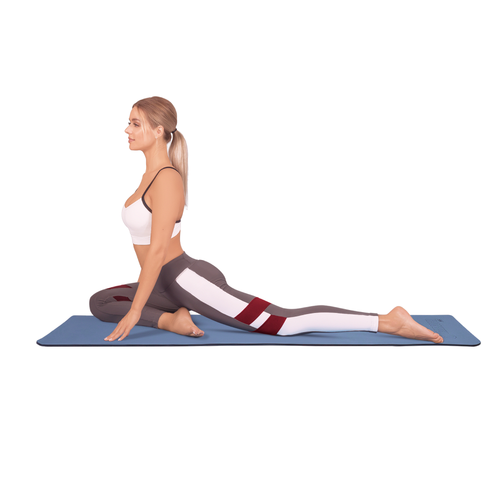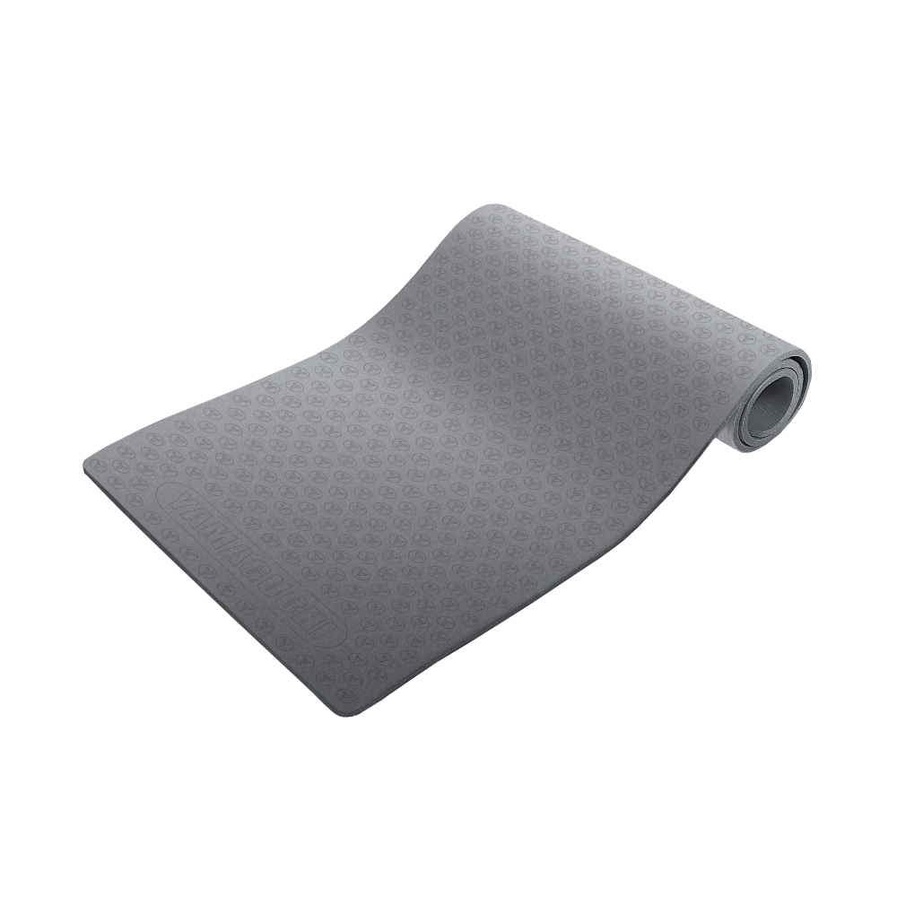 ТPE — экологичный материал, отвечающий требованиям безопасного для окружающей среды разложения при утилизации. Благодаря ему коврик лёгкий, не скользит, не взаимодействует с мыльным раствором или потовыми выделениями. Тактильно приятен при контакте с кожей. Не деформируется от интенсивного использования, в том числе в условиях повышенного холода или тепла. Можно заниматься в кроссовках. Толщина коврика — 8 мм.