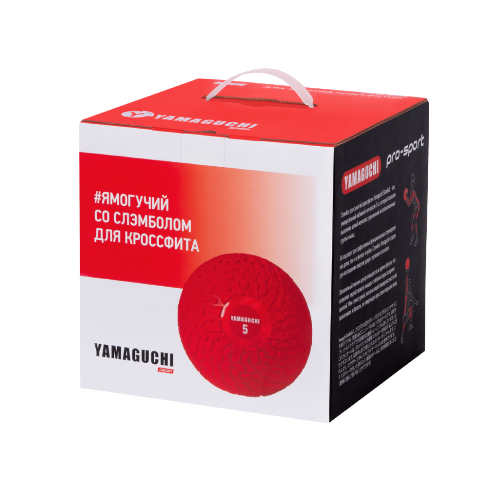 Yamaguchi SlamBall — спортснаряд для занятий кроссфитом — мяч набивной весом в 5 килограмм. Со сбалансированной массой, чтобы поглощать энергию удара, не отскакивая от поверхности, отличный утяжелитель.