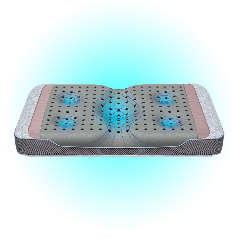 Технология зонированного распределения давления во время сна Sleep Zone позволяет поддерживать естественные изгибы шеи и шейного отдела позвоночника в физиологически правильном положении