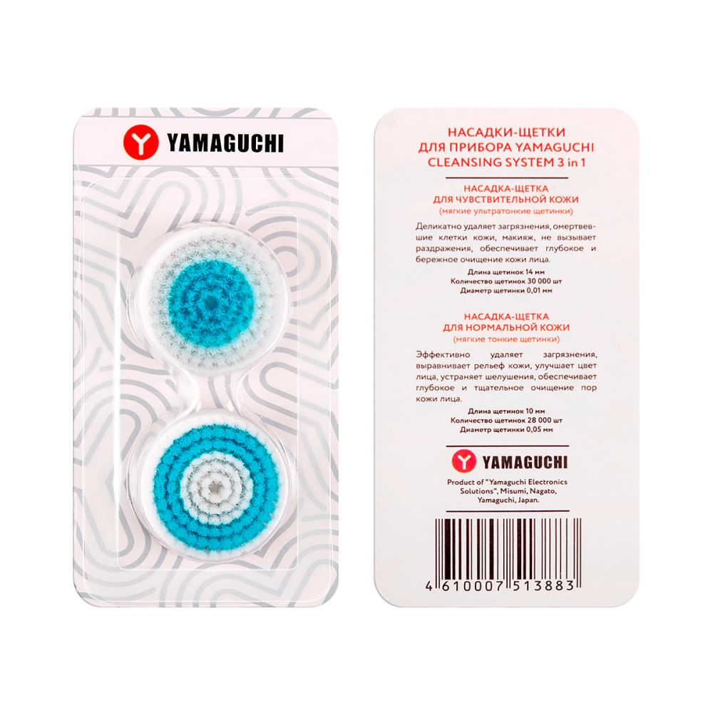Комплект насадок для прибора по уходу за кожей лица Yamaguchi Face Cleansing System с 3 в индивидуальной упаковке позволяет регулярно заменять насадки-щетки на новые.