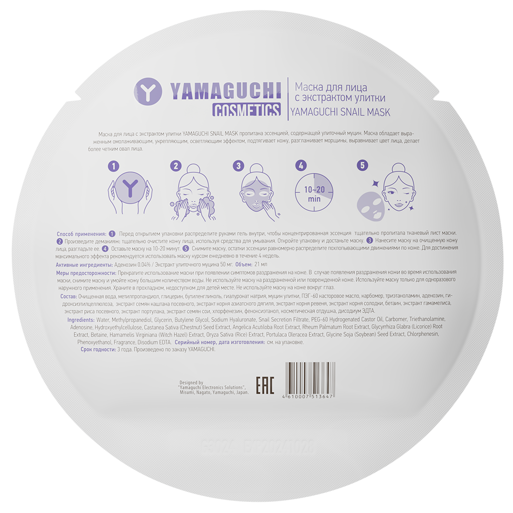 Использование маски с муцином улитки Yamaguchi Snail Mask рекомендовано обладателям обезвоженной, тусклой и увядающей кожи, а также людям старше 30 лет.