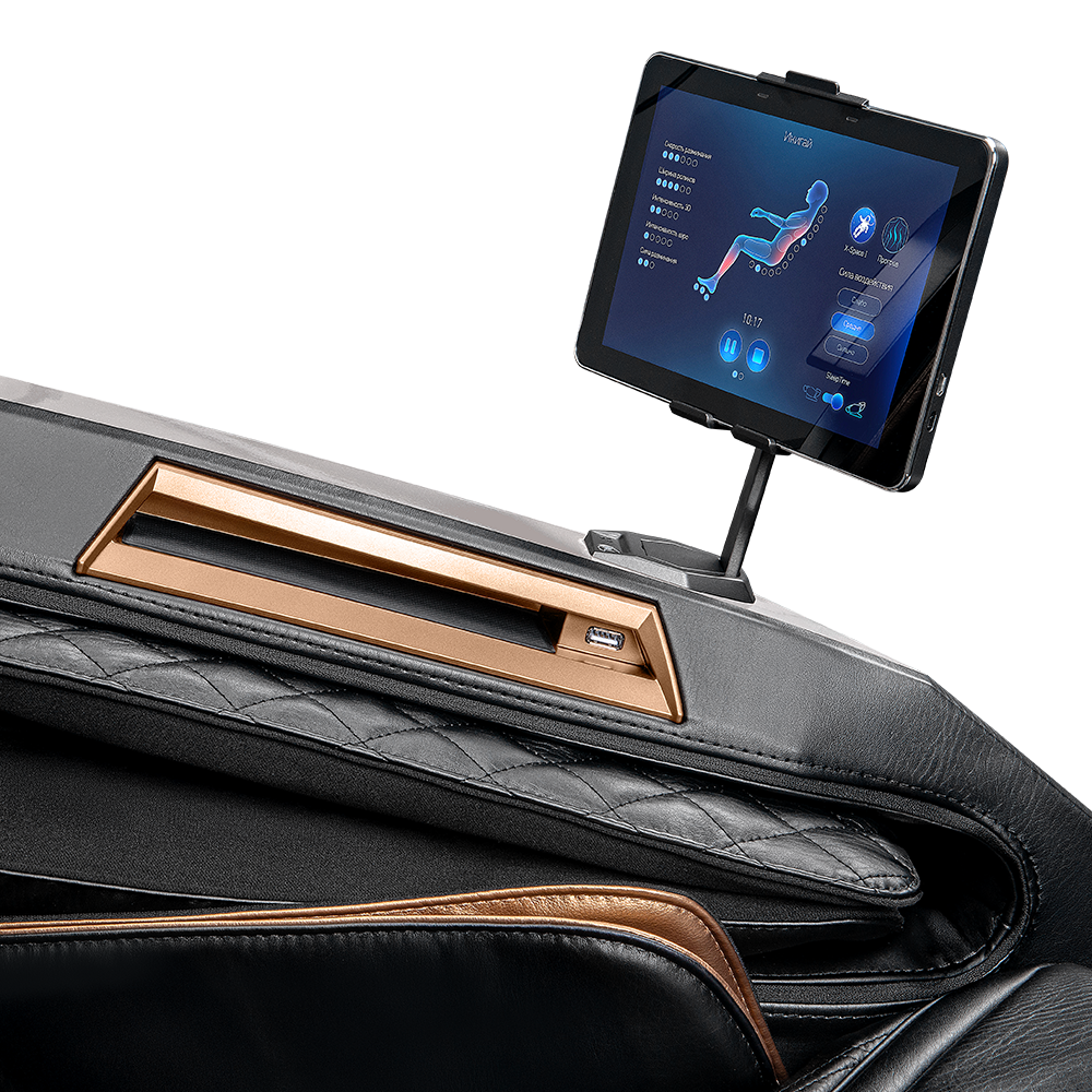 Кроме того, это массажное кресло имеет удобные функции, такие как автоматическое сканирование тела пользователя перед каждым сеансом массажа, технологию экономии пространства, встроенную аудиосистему, которая помогает создать идеальную атмосферу релаксации и комфорта, возможность массажа ладоней и стоп.